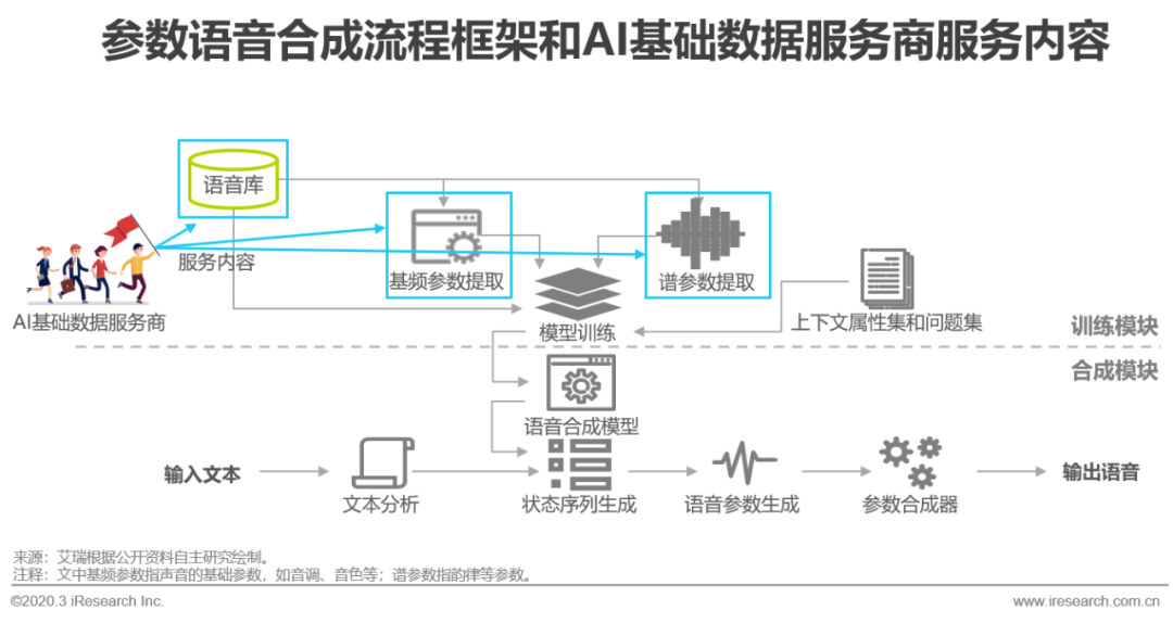 语音合成技术已经广泛应用于人们的日常生活中,如手机助手、智能客服、智能音箱、语音导航都是其应用场景。目前语音合成的主流方式可以分为波形拼接合成和参数合成两种,其中参数合成是利用文本参数和声学参数间形成映射模型,从而完成文本内容向语音转化的过程,所以在有限样本数据的情况下,参数合成语音成为了众多智能语音算法团队的首选,随着深度学习在语音领域的突破,利用神经网络取代传统映射建模的参数合成方式,在合成效果上更进一步,逐渐减少了合成语音的机械感。在语音合成中AI公司着重于映射模型算法的创建和训练,而语音片段数据和相应的声学参数标注则交由数据服务商提供,其间数据服务商需要对录制的发音人语音片段进行音素、韵律、音节边界、音素边界、词性、重音、声调等内容进行标注,然后切分、截取音素边界;并且在项目初期需要向客户展现合成demo,在项目交付时需校验合成效果,这就要求数据服务商不仅要掌握专业的声学知识、数据标注经验,还要拥有语音合成的算法能力,目前该领域主要由海天瑞声和标贝科技两家数据公司提供服务,未来随着物联网的普及,将会有更多交互设备出现,语音合成需求将会持续增长,在此趋势下,拥有语音合成数据处理能力,将成为具有排他性的竞争壁垒。