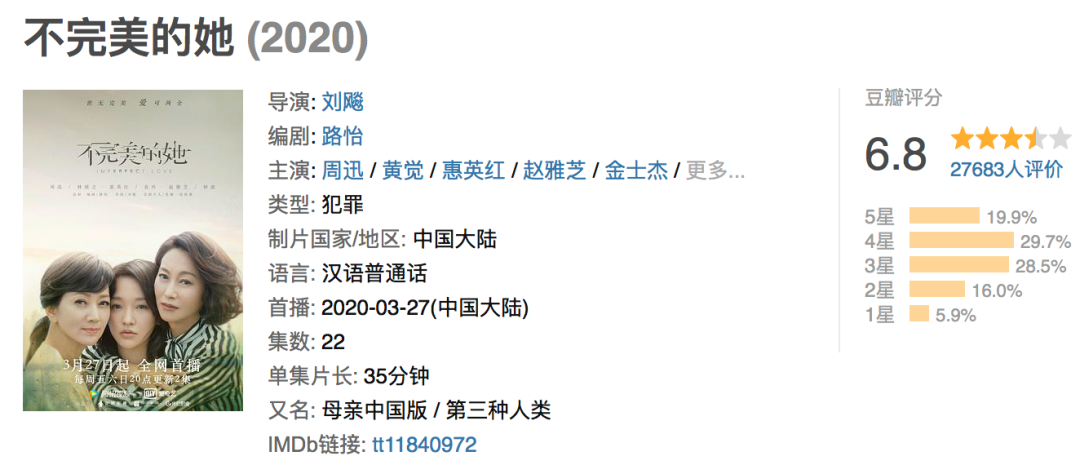 4月1日,上线不到一个礼拜的新剧《不完美的她》豆瓣评分滑落至6.8。之前那些殷殷期待,终究是错付了。