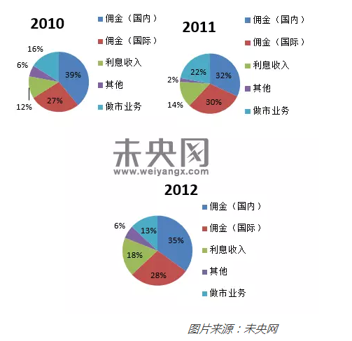 佣金在总收入中占比分别为35%(2012年),32%(2011年),39%(2010年),是IB盈透乃至IB Group的主要收入来源。IB盈透采用的是固定佣金和浮动佣金两种灵活机制。