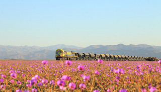 但是,因为今年的厄尔尼诺现象,过去几个月里这里竟然下起了久违的大雨。时隔18年,沙漠里的花终于绽放……