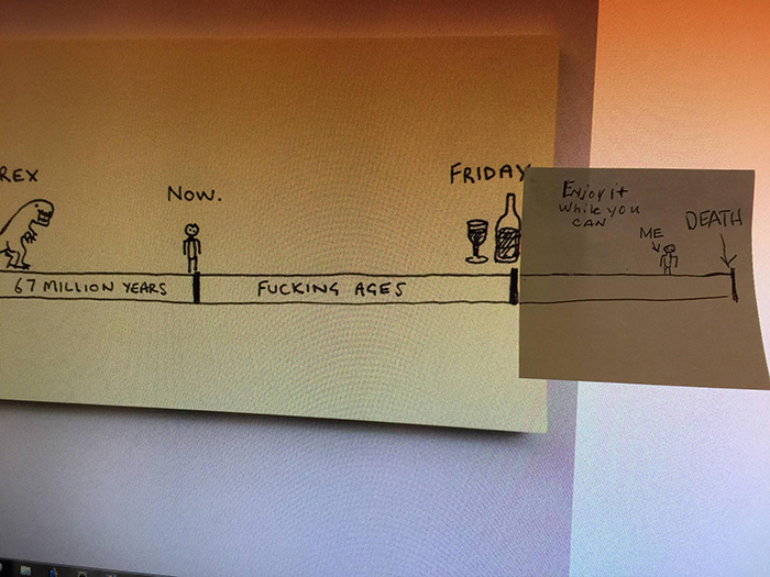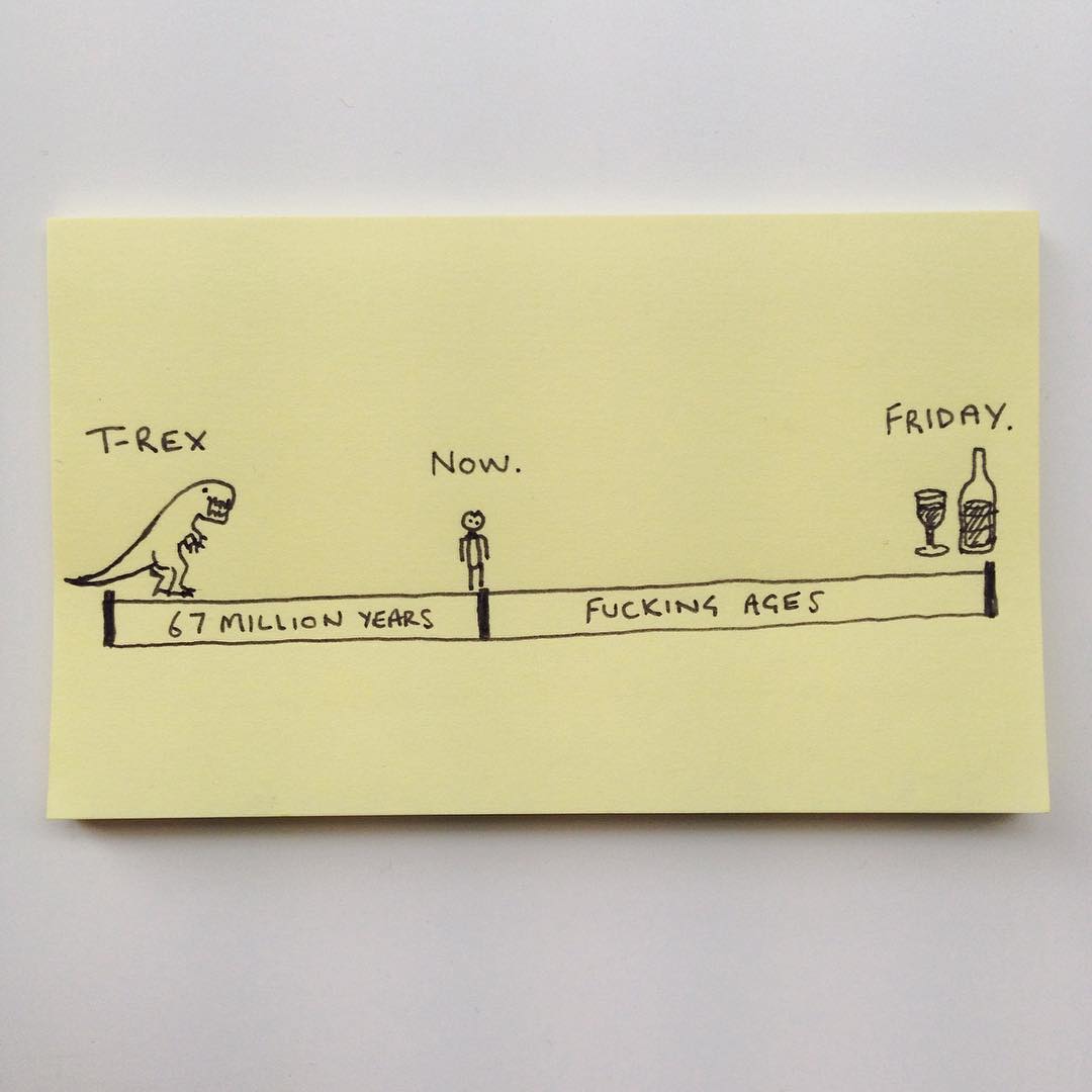 此刻距霸王龙时代已经过去六千七百万年,但为啥感觉我还要熬不止六千七百万年才能熬到周五下班?