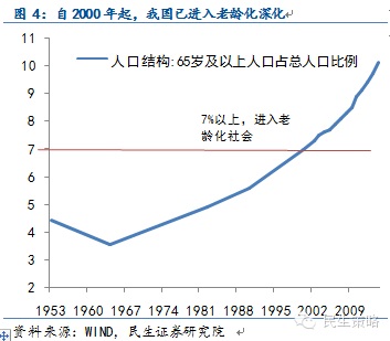 我国2000年已进入老龄化社会。老龄化社会是指老年人口占比达到或超过一定比例的人口结构模型,按照联合国传统及新标准,60岁以上人口占比达10%或65岁以上人口占比达7%,该地区即进入老龄化社会。2000年我国第五次人口普查数据显示,60岁以上人口占比10.2%,65岁以上人口占比6.96%,按照联合国的新老标准,我国都已进入老龄化社会。