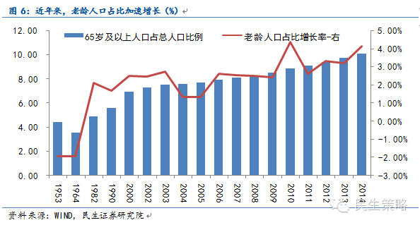 老龄人口增速上升主要受“婴儿潮”人口进去老龄人口数量增加以及人均寿命延长影响,首批“婴儿潮”出生人口在2014年开始进入老龄人口,同时,2010年第五次人口普查显示我国人口平均预期寿命为74.83,高于发展中国家平均水平。