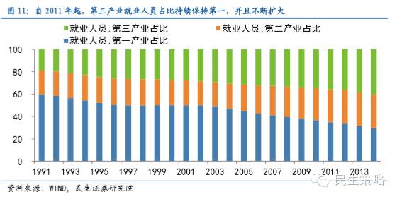 二、不利于经济结构转型,消费服务业及工业升级转型需要年轻、受教育程度高的劳动力