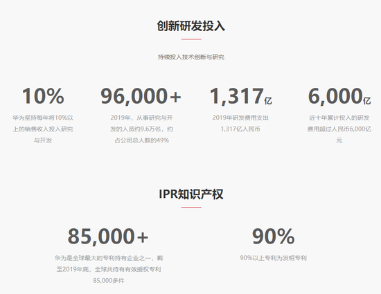 就像前述,不管是自身,还是媒体宣传,华为都是典型的依靠创新驱动增长的企业,给业内印象最深的表现就是在华为的宣传中每每提及代表其创新实力的研发的投入。以过去的2019年为例,华为在研发上的投入达到了1317亿元,同比增长将近30%。