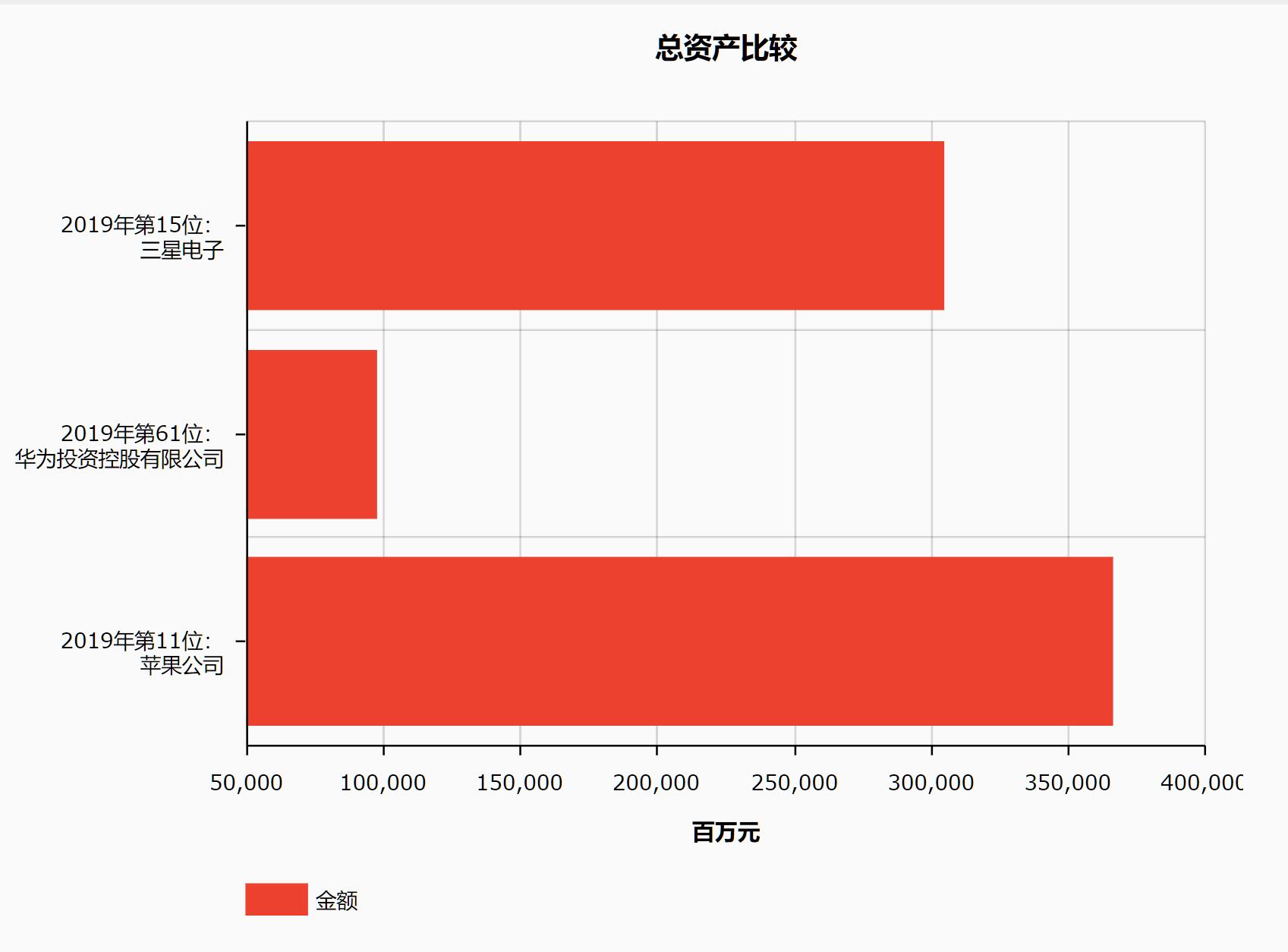 好了,到这里我们又可以做一个理想中的沙盘推演,去除营收和利润,仅就资产(比家底)而言,从去年《财富》杂志的世界500强榜单的资产项中,华为与苹果和三星存在着相当的差距。