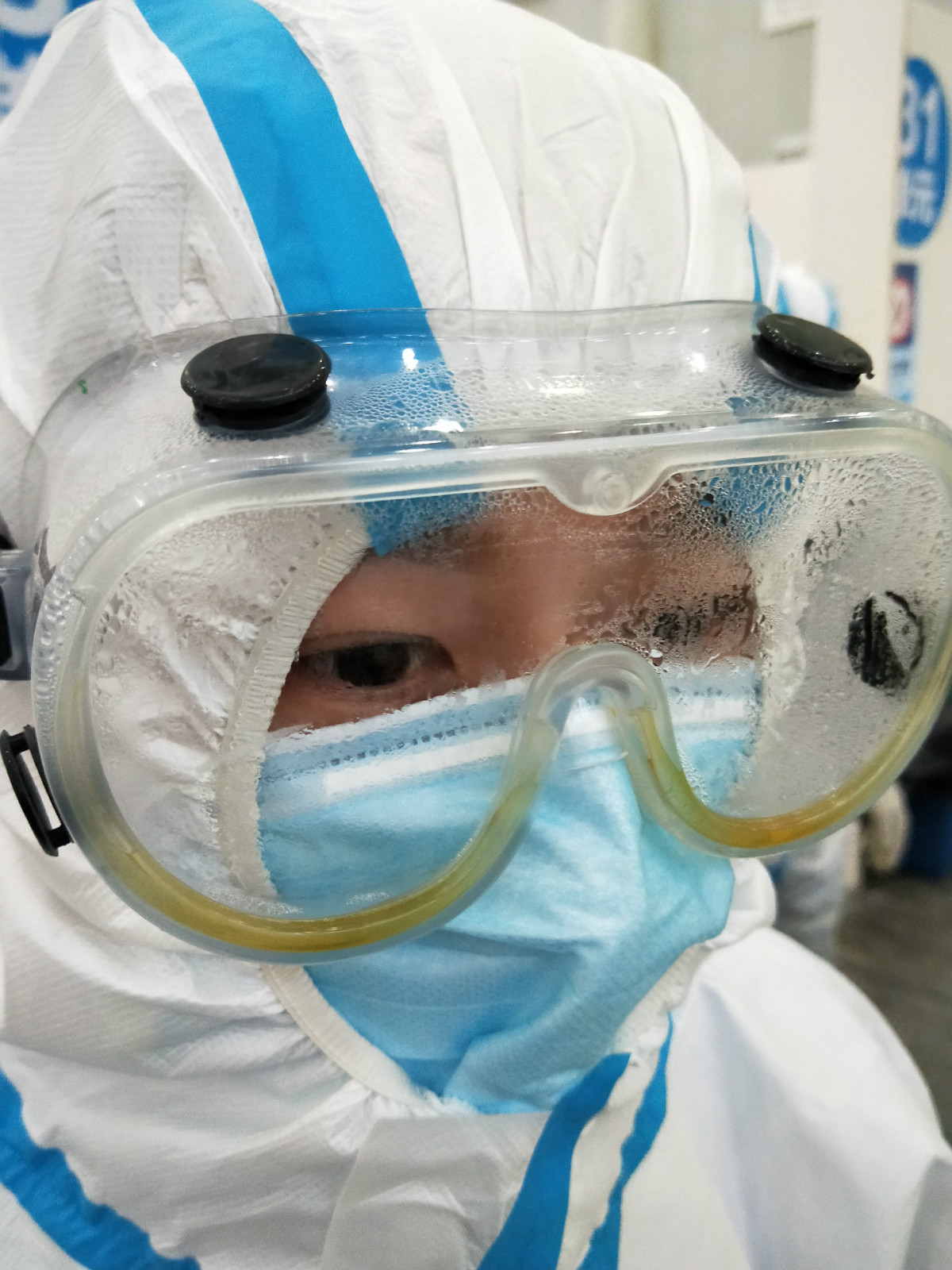 其中,一位患者为任蕊拍下了她工作中的一个瞬间,照片中她正在病床边忙碌,护目镜上挂满汗水和哈气,她湿漉漉的头发和充满红血丝的眼睛格外醒目。这位患者特意向任蕊要了微信,把照片传给了她,他对任蕊说:“这张照片我们都要好好保存,太有意义了。”任蕊真的把这张照片存在了手机里,看着照片,她会从内心深处感到温暖,她用心对待患者,患者也体恤她的辛苦,给予关怀。