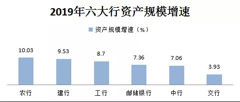 “宇宙行”的工行去年的总资产突破30万亿元大关,领跑六大行。建行、农行和中行紧随其后,也纷纷保持2018年的优势超过20亿元大关。去年,邮储银行资产规模首度上升至第五大银行。此外,六大行资产规模平均增速为7.77%,农行资产规模增速最快,首度突破10%。