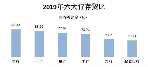 据整理数据发现,2019年六大行存款总额为90.18万亿元,贷款总额为68.39万亿元。工行无论是在存款总额还是贷款总额都位居首位,均超过20万亿元,这也反映出工行客户黏性较高,吸收存款以及贷款投放能力较强。