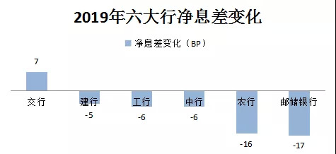 去年,银行息差承压,直接导致利息净收入减少。除交行净利息收益率同比提升7个基点,带动利息净收入实现10.06%的增长,增速较2018年提升5.23个百分点外,其余五大行净息差都有一定程度下滑。