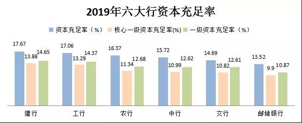 从资本充足率看,建行的资本充足率独占鳌头;工行、农行紧随其后。去年全年,除邮储银行资本充足率略有下降外,其余银行资本充足率都有一定提升。