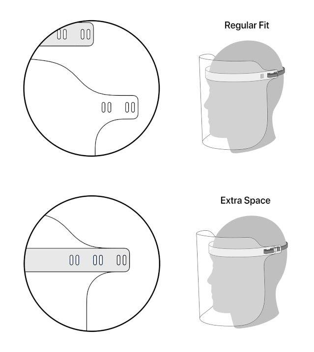 从视频中可以看出,苹果面罩和常见的医用面罩差别不是很大,由透明塑料面板和可调节长短的硅胶绑带组成。