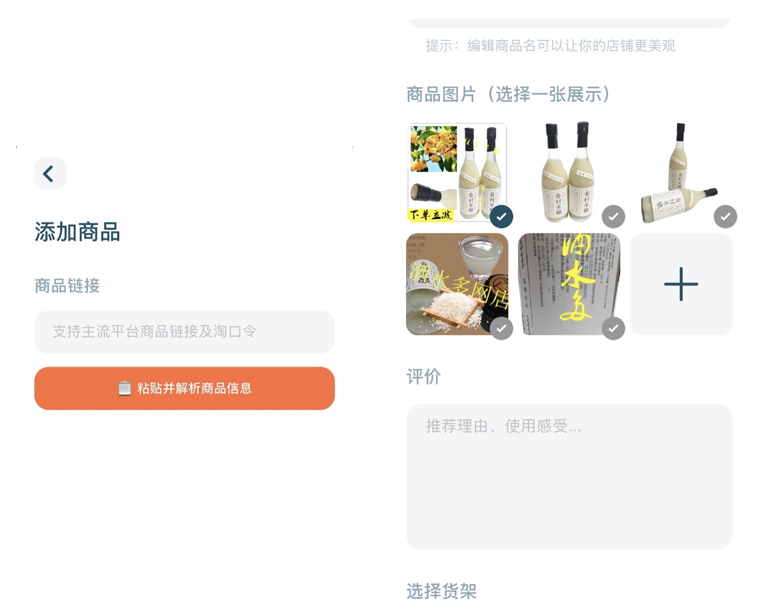 目前,用户加入商品时仅支持添加一张电商平台的图片。据团队介绍,他们正在考虑支持选择多张图,同时正在开发手动录入商品的功能。