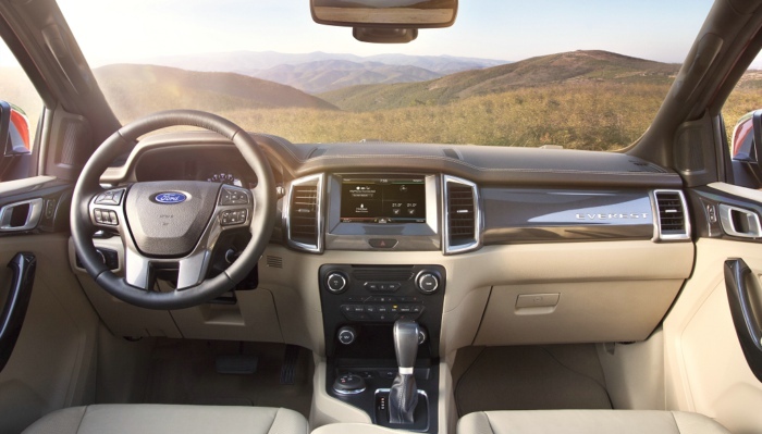 2. 从产品的角度看,撼路者确实是一款用心之作,内装上极力的打造出应有的舒适感,材质的用料和拼接的工艺都算可圈可点。在一些人性化的细节也考虑得足够周到,比如为了营造车内静音效果,撼路者在车顶中隐藏了的3个扬声器专门用来监测车内噪音;后排也配备了独立空调以及230V和12V的电源接口;SYNC 2车载娱乐通讯系统也出现在撼路者的配置单中,驾驶者可以通过语音指令来更方便地操控车载信息娱乐系统、温度控制甚至与车辆连接的移动设备,让驾驶者可以通过触碰8英寸的中控显示屏来轻松操作车辆的系统功能。