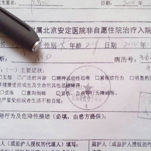 之后的一个多月,我不仅继续承受着丝毫没有好转的病情,还要忍受药物的副作用。脑子更加恍惚,视力也变得模糊,拿东西时手不住发抖,吃饭夹不住菜,写字笔画成了波浪形,尿频,梦中尖叫惊醒……我濒临崩溃,终于在年底的一天,从早上在床上挣扎到下午三点,爬起来去了医院,候诊时坐在诊室门口地板上哭得扔了一地的纸巾,然后走进诊室,红着眼睛对医生说,帮帮我,我想死,我怕我控制不了自己,让我住院吧。