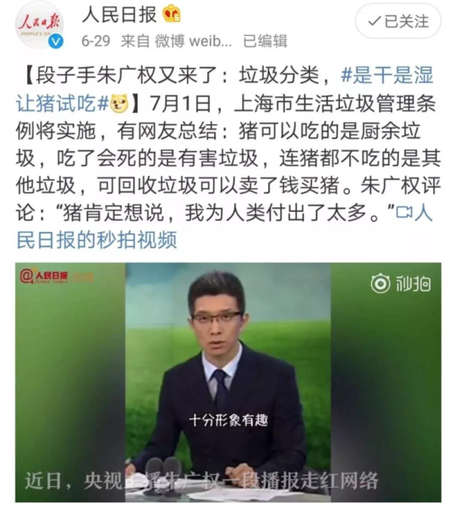 垃圾分类怎么分?朱老师用猪写了段子,人民日报都忍不了了,报他。