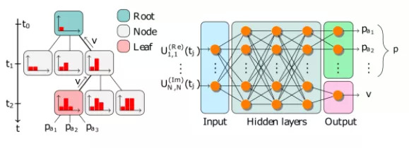 图1.AlphaZero使用的MCTS(左)和深度神经网络(右)的图示