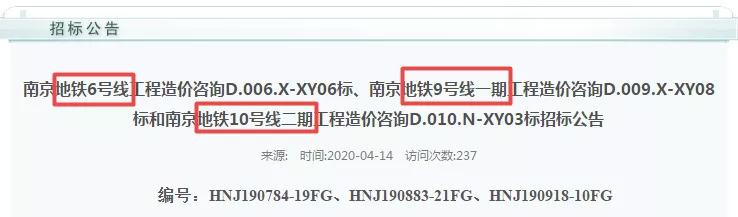 这两则招标公告分别涉及到了地铁3号线三期、地铁6号线、地铁9号线一期和地铁10号线二期。辐射范围近乎大半个南京。
