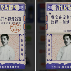 清明节假期前,如果你打开手机淘宝搜索“鲁迅说的话”,就会获得一张随机生成的“鲁迅先生说”的便签彩蛋,同时提示你观看北京鲁迅博物馆的直播。