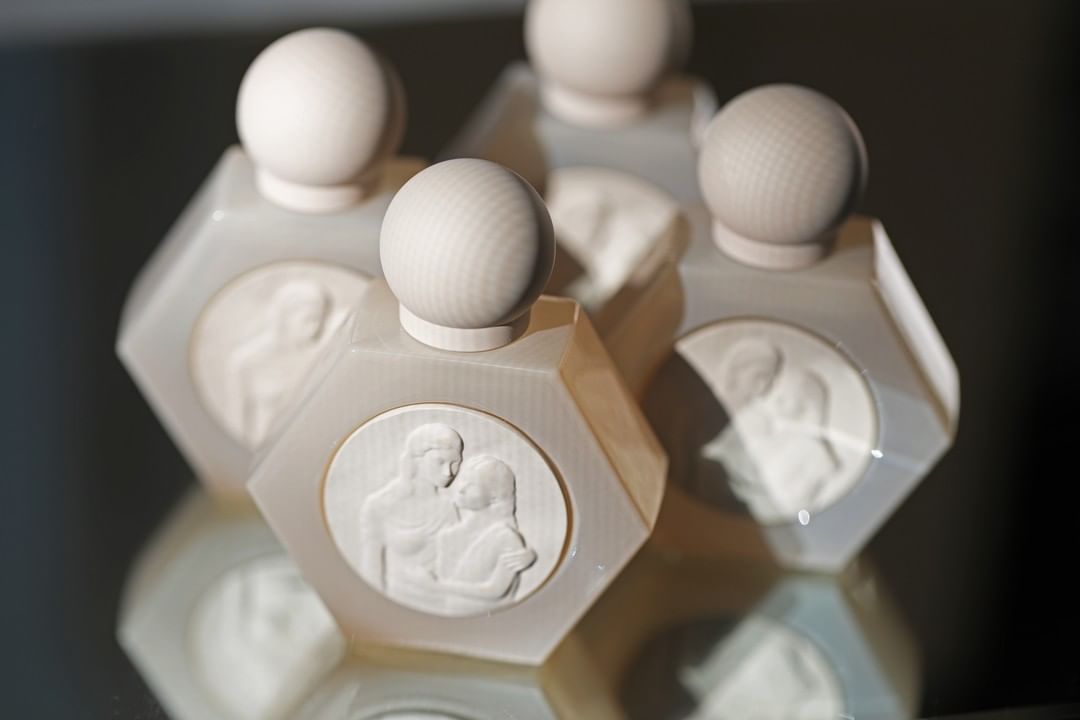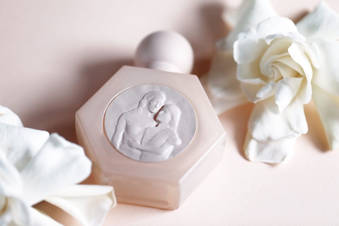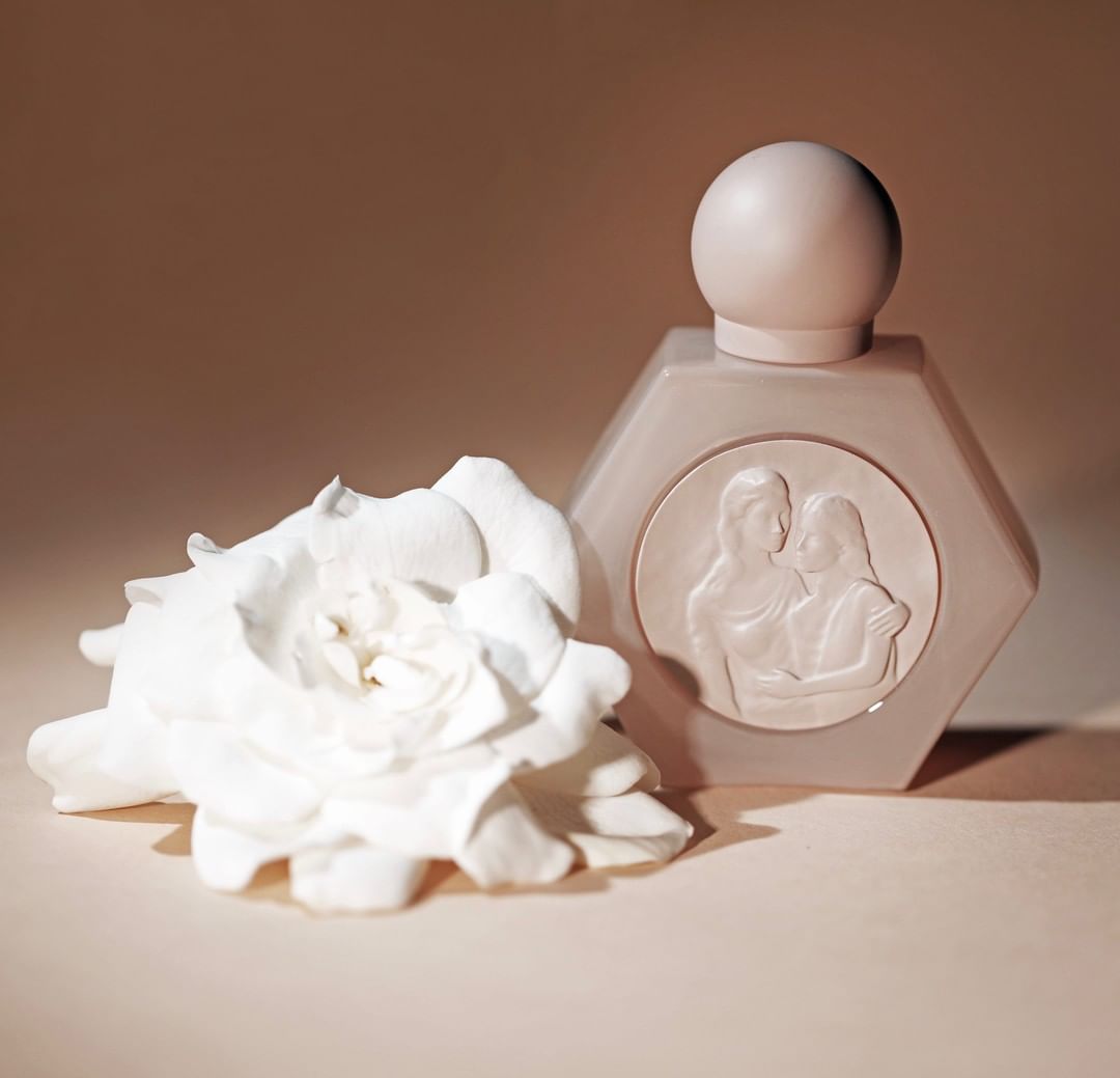 这款香水专门为即将在五月带来的母亲节而创作,设计师特地采用浮雕的方式在瓶身上呈现了一副温馨的母女相拥图案,并用纯洁的浅裸粉色来作为主色调。