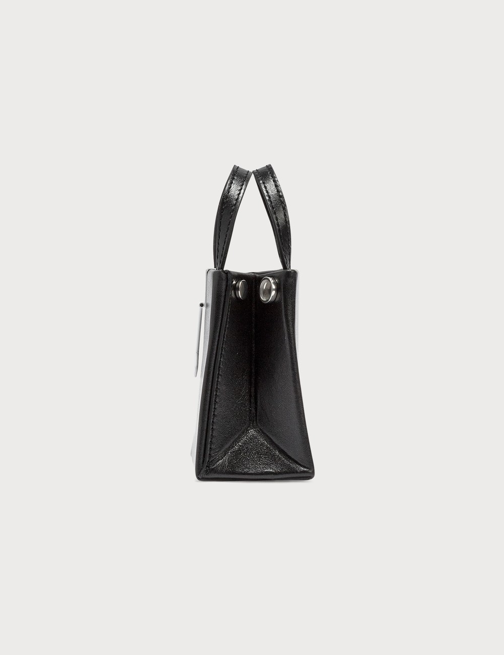 从正面看,BABY BOX包袋的廓形与此前Off-White推出的多款it bag一样,都是用沉稳方正的线条来构造出传统的雅致感,一枚夹在上面的装订夹仅仅做了不痛不痒的装饰。但从侧面看,这款包袋立体化的样子像极了一枚皮革制成的装订夹,并且侧边处恰到好处的凹陷使其模样更为逼真。