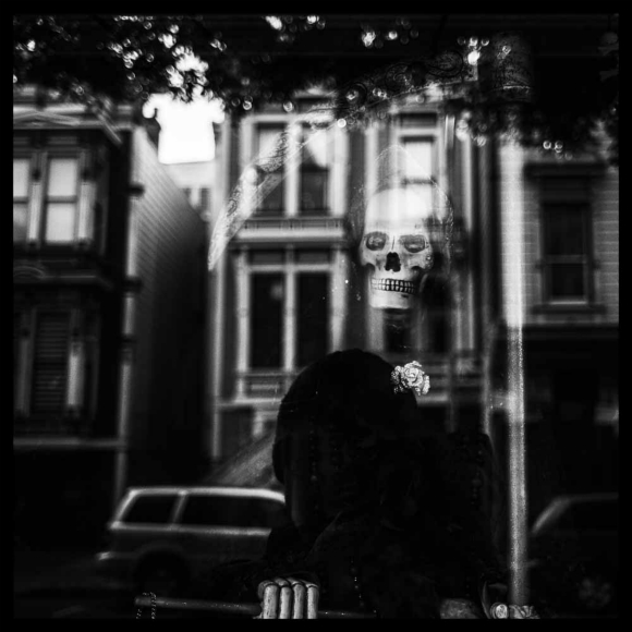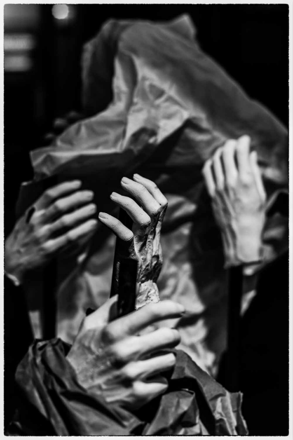 乔志健最初拍摄的一系列作品被称为“创伤的序列”(Sequences of Trauma)。青筋盘结瘦骨嶙峋的双手、鬼影幢幢的树林中掩面的男人、橱窗中手握镰刀的死神倒影……那些在乔志健游走过程之中让他心灵受到触动的东西,也和死亡与伤痛有关。