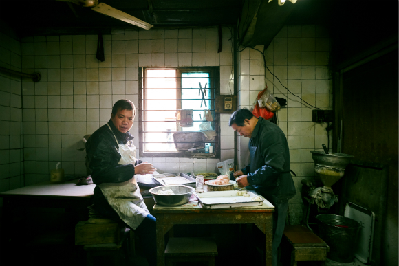 乔志健为了拍一张人物特写,曾连续一周和父亲去一家古桥边的馄饨店吃早饭。那家店至今已有30多年的历史。父亲的小学同学在下岗后回到盛泽,与弟弟一起继承父业。乔志健用镜头记录下了一个寻常早晨兄弟俩在厨房包馄饨的场景。