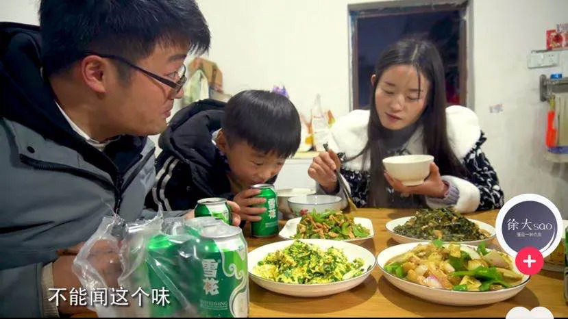 甚少有人在徐大sao的视频里“精研厨艺”,二荆条谁都会爆,老腊肉谁都会炒。人们沉迷的是“心灵按摩”,疯狂地摄入碳水,再欣赏妻子素面朝天的平凡美,以及一家人围坐吃饭的圆满。