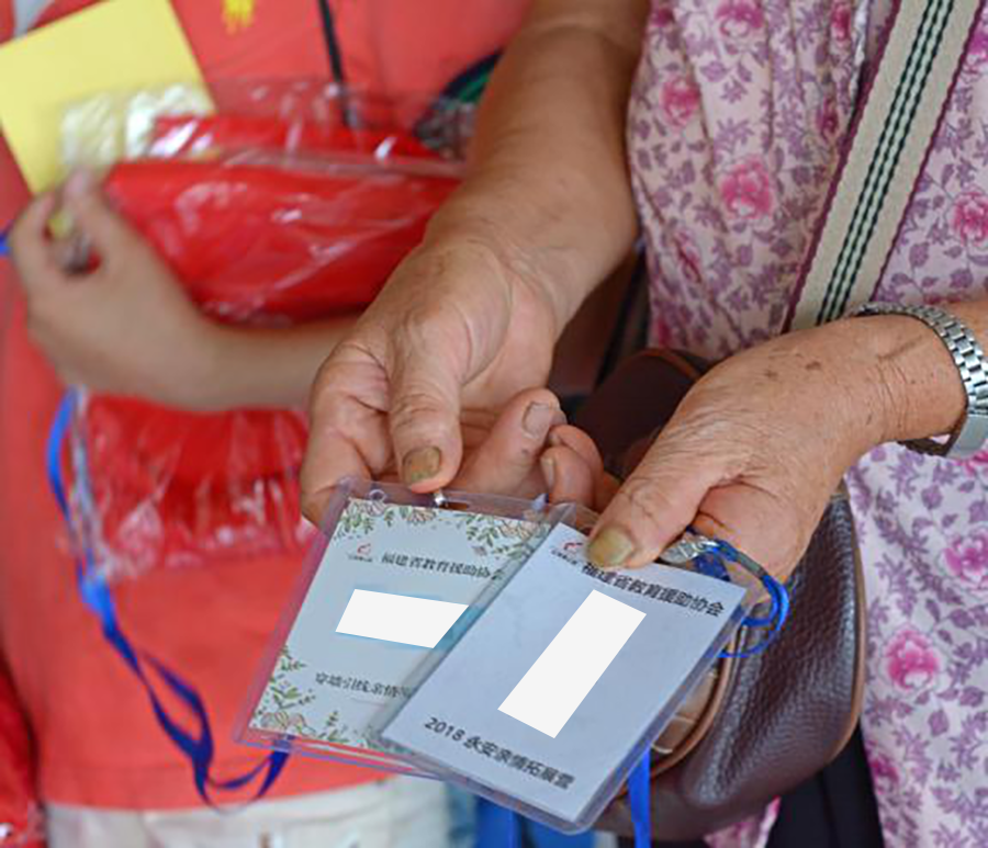8月10日下午,奶奶带着孙子从福清坐动车赶到永安,参加“穿墙引线”。在酒店的签到处,奶奶用一双布满老年斑的手,拿出2018年参加活动的胸牌,不断说着感谢的话。奶奶不知道如何表达感谢,她给志愿者们下跪,在场的志愿者也忍不住落下眼泪。
