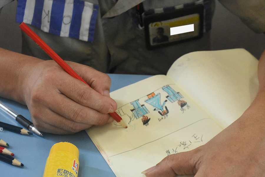 小聪之前还画了一张全家福,有爸爸妈妈和自己却没有奶奶,爸爸拿笔在小聪旁边画上了奶奶。他拿着笔真挚地说:“希望我妈妈身体能健健康康的,这些年让她受苦了,一个人把孩子养大,我一定会好好改造。出来之后一定会给他们一个幸福的家!”
