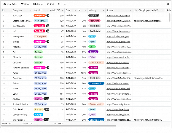 根据Layoffs.fyi的数据,自3月1日起,已经有273个初创公司累计裁员25,873名员工。