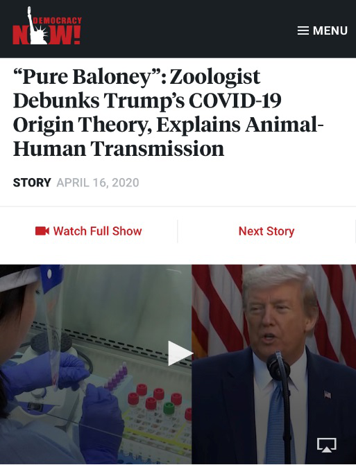 △《Democracy Now》:指责特朗普的COVID-19起源于武汉的说法