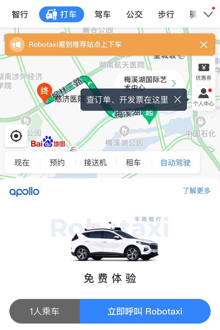 4月20日,百度在长沙启动了Apollo Robotaxi自动驾驶出租车服务,普通市民也能免费试乘。