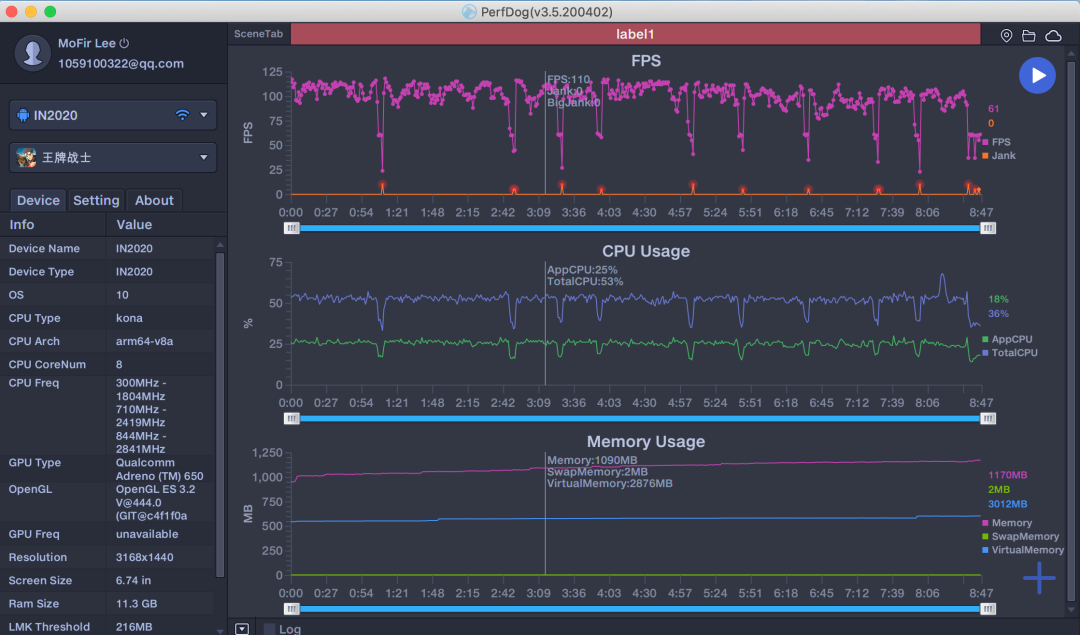 不过有一说一,虽然使用一加8 Pro玩120Hz的游戏,画面监测软件显示帧率波动比较明显,但是比较神奇的是游玩的整个过程你不会感觉到画面有顿挫感,可能是MEMC技术对游戏进行了插帧吧。除了机身温度控制得不是很好,游戏体验还行。