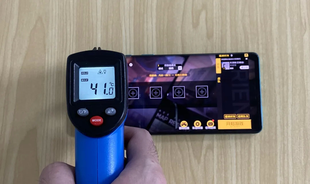 一局下来,机身表面的温度来到了41,游玩过程中确实能感觉到有热气在往外冒。