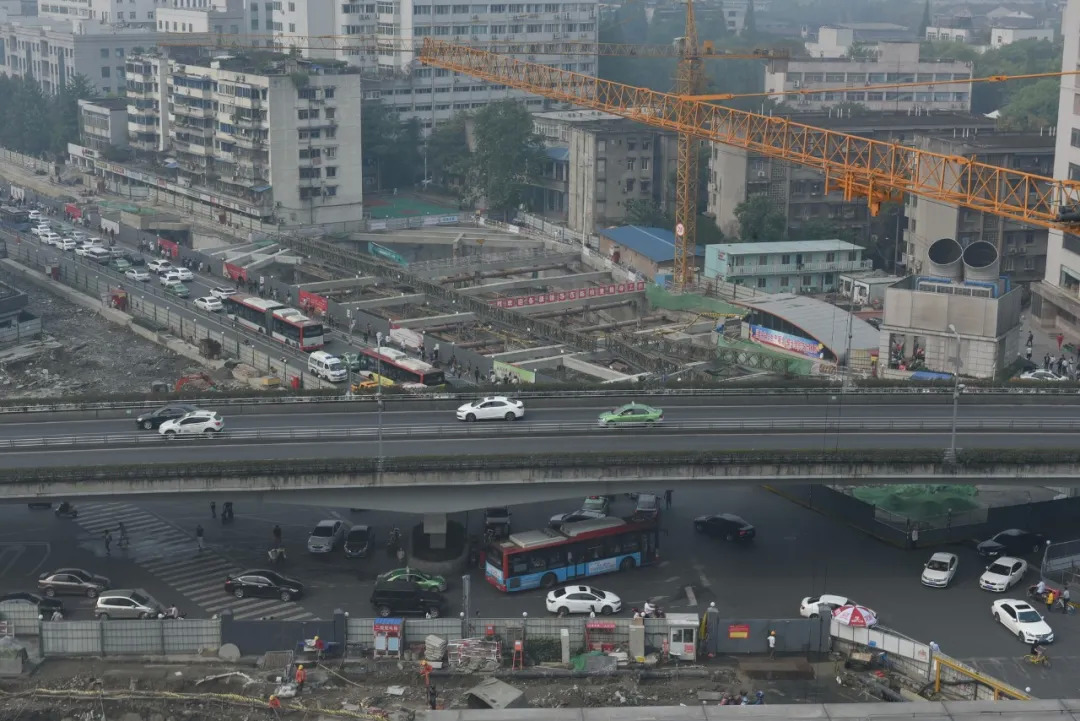 ▲中医大省医院站采用先桥后站、站桥隧合一技术施工