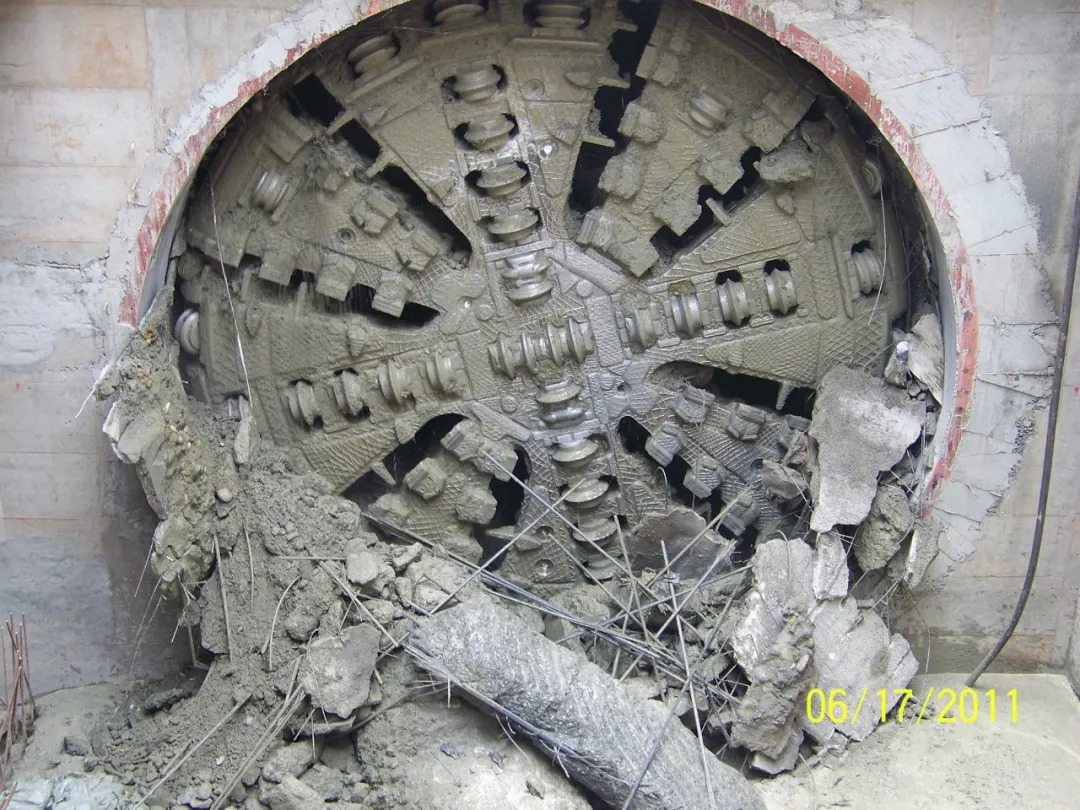 ▲盾构切除采用玻璃纤维筋技术的围护桩