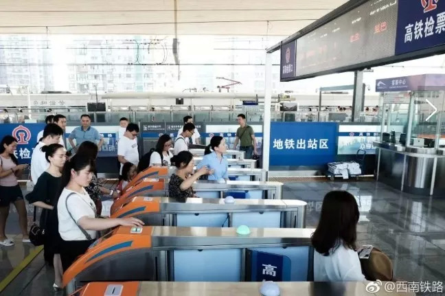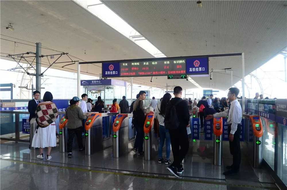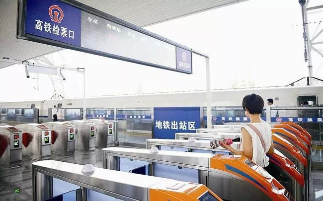 而乘坐地铁2号线到站的乘客,也可以通过铁路验证验票闸机,进入动车站台。