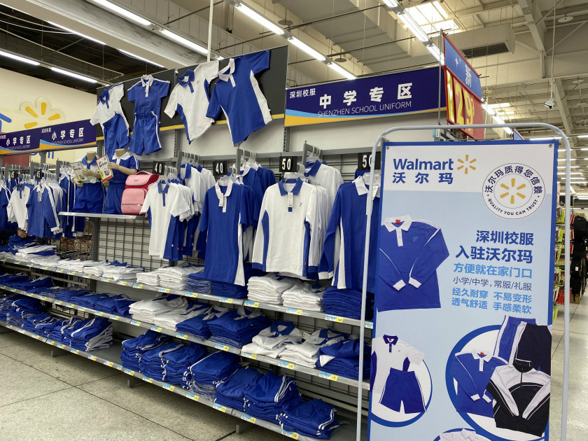 4月27日是深圳市高三、初三年级学生返校的第一天,沃尔玛在这天宣布,在深圳的25家门店及沃尔玛到家开售深圳中、小学校服,包括男女款的运动服和礼服。