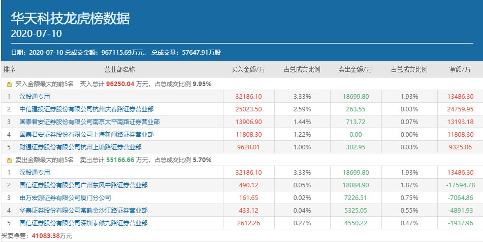 7月10日,华天科技尾盘成功封板,当日公布的龙虎榜数据显示,包括作手新一在内的三大游资席位合计买入该股高达5.07亿元。