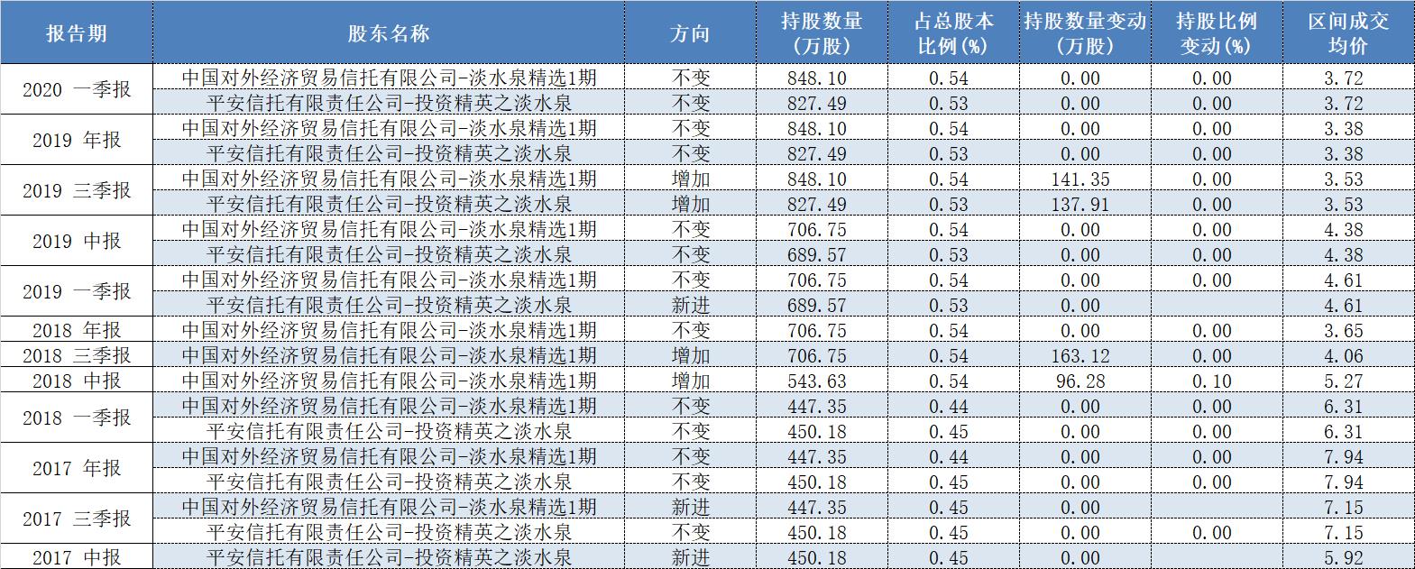 2019年一季报时,“投资精英之淡水泉”重新现身中国武夷前十大流通股东之列,持股数量为689.57万股。2019年三季度时,“淡水泉精选1期”和“投资精英之淡水泉”又分别增持该股141.35万股和137.91万股。