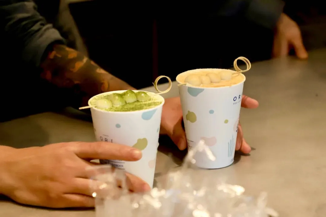 比如豆乳奶茶用豆乳奶盖、黄豆粉和奶茶组队;再加上白玉丸子,让一杯茶饮的形式感更丰富。