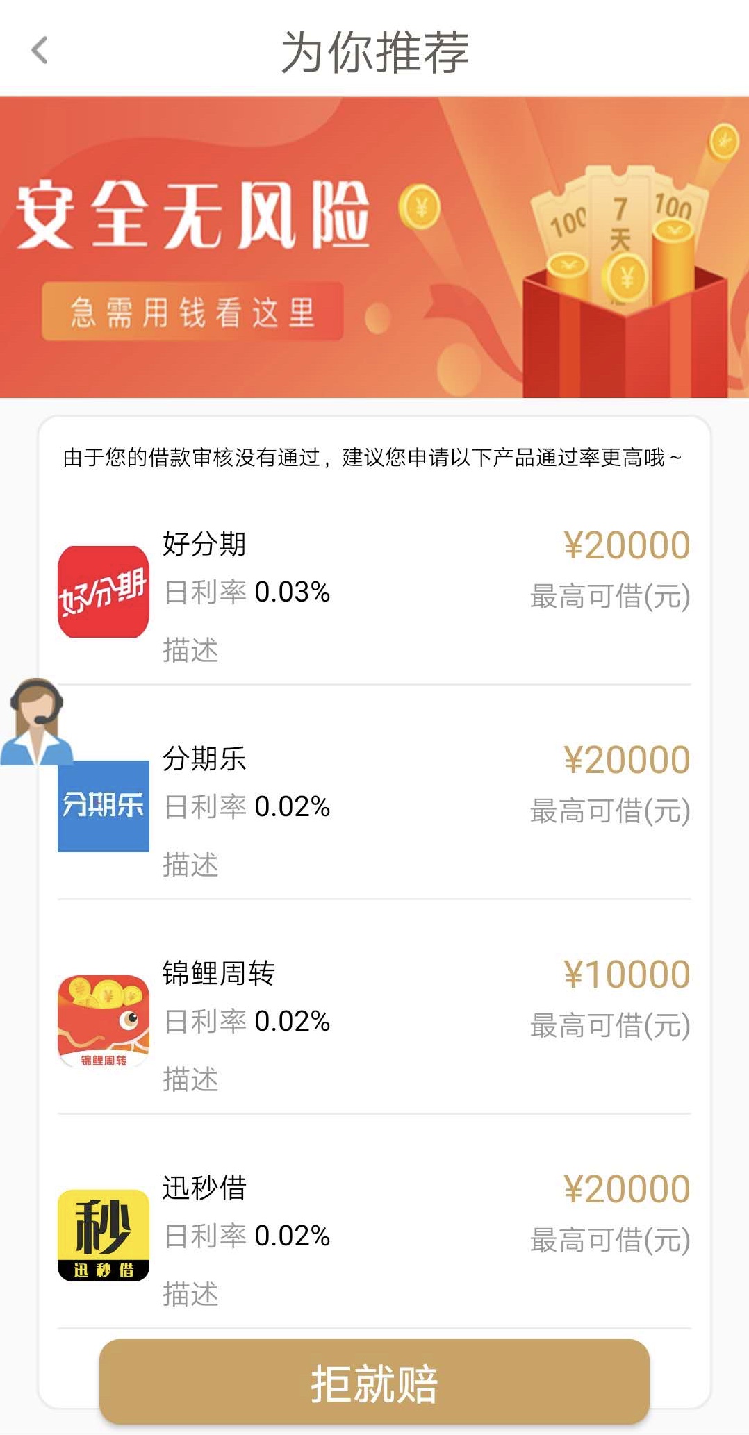“说我借款审核没有通过,又让我下这些东西继续借。”石先生称平台在提示无法借钱之后,会向用户推荐“分期乐”、“锦鲤周转”等其他借贷App。