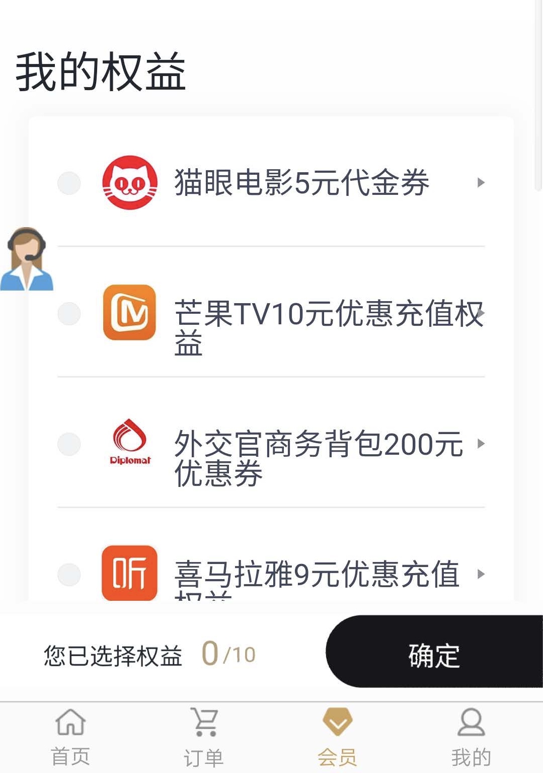据另一名用户提供给界面新闻的截图显示,在闪电优品“会员”板块可发现,用户一共可选择10项权益,包括“猫眼电影5元代金券”、“喜马拉雅9元优惠充值”、“11.8元买爱奇艺月度会员”等。