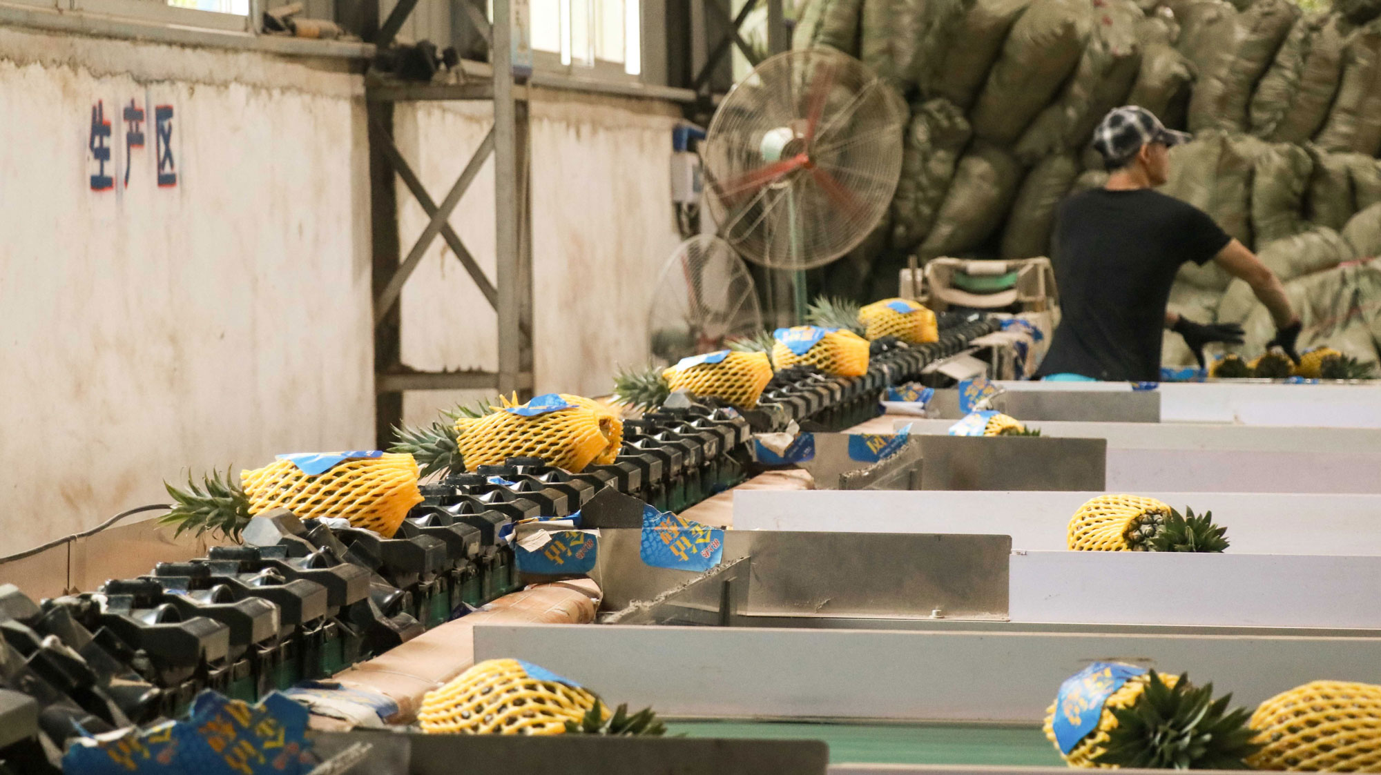 界面海南步入天地人博厚镇的凤梨种植基地,不时有采摘凤梨的农民的声音传来,里面充斥着快乐和满足的情绪。