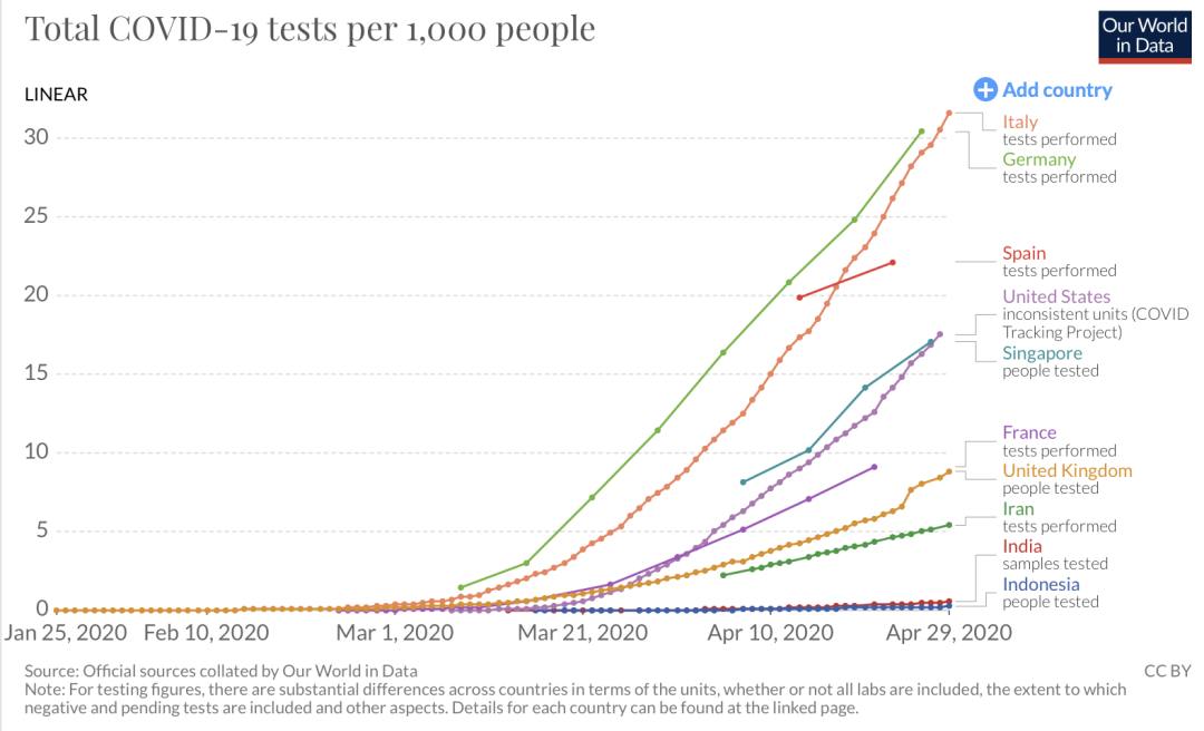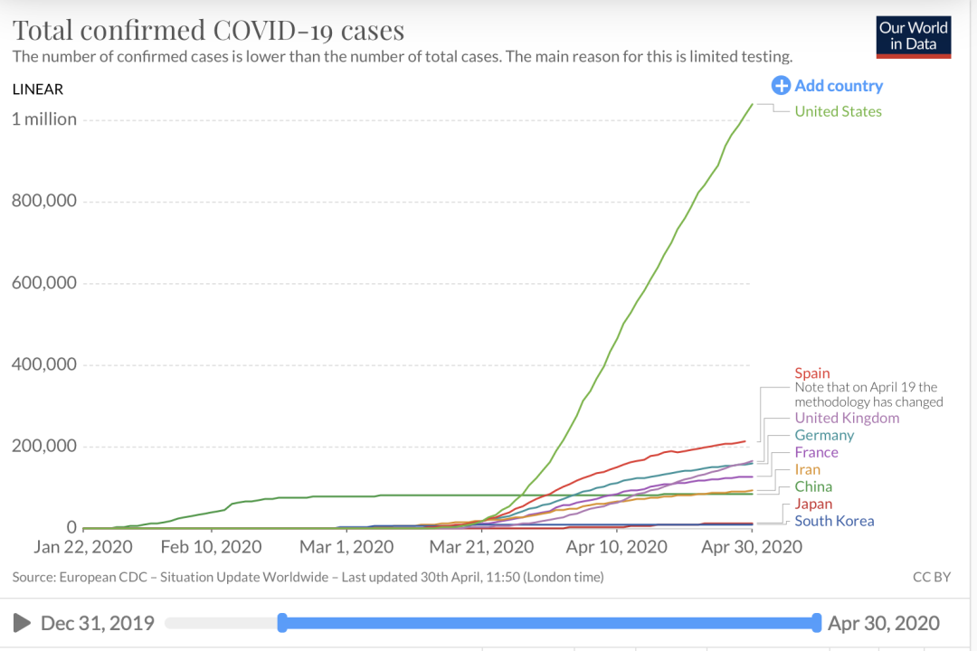从技术上讲,西班牙、意大利的疫情逐渐转好,靠的是不断上升的大规模检测,哪怕是确诊人数在变少的当下也依然在加强监测力度。而美国目前的每日检测数量仅有30万次。
