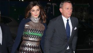 这对于2011年闪婚的英国夫妇从一进场就开始求恩爱,甜蜜满满。今年47岁的丹尼尔一身修身西服,显得挺拔潇洒,由他主演的电影《007:幽灵党》(Spectre)也刚刚上映。