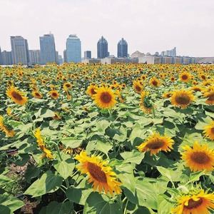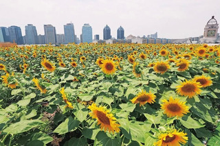 在郑州郑东新区宝龙城市广场的屋顶,占地3000平方米的向日葵林向阳开放。如同梵高画板上的金黄一般灿烂夺目。这片花海是由400多名郑州青少年同时在这片屋顶种下的。