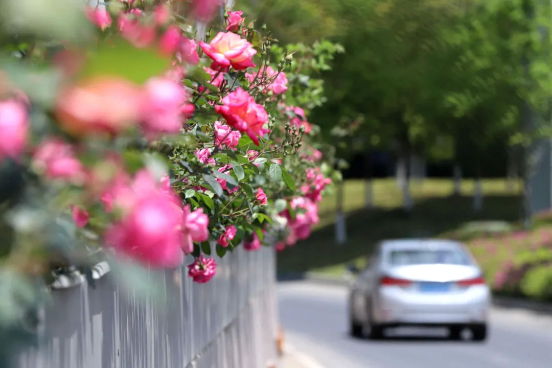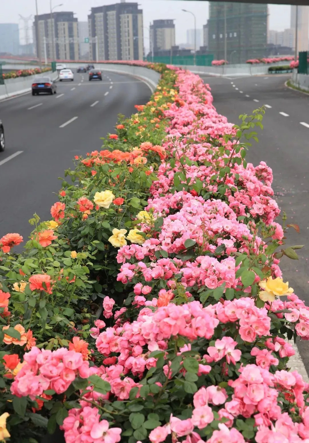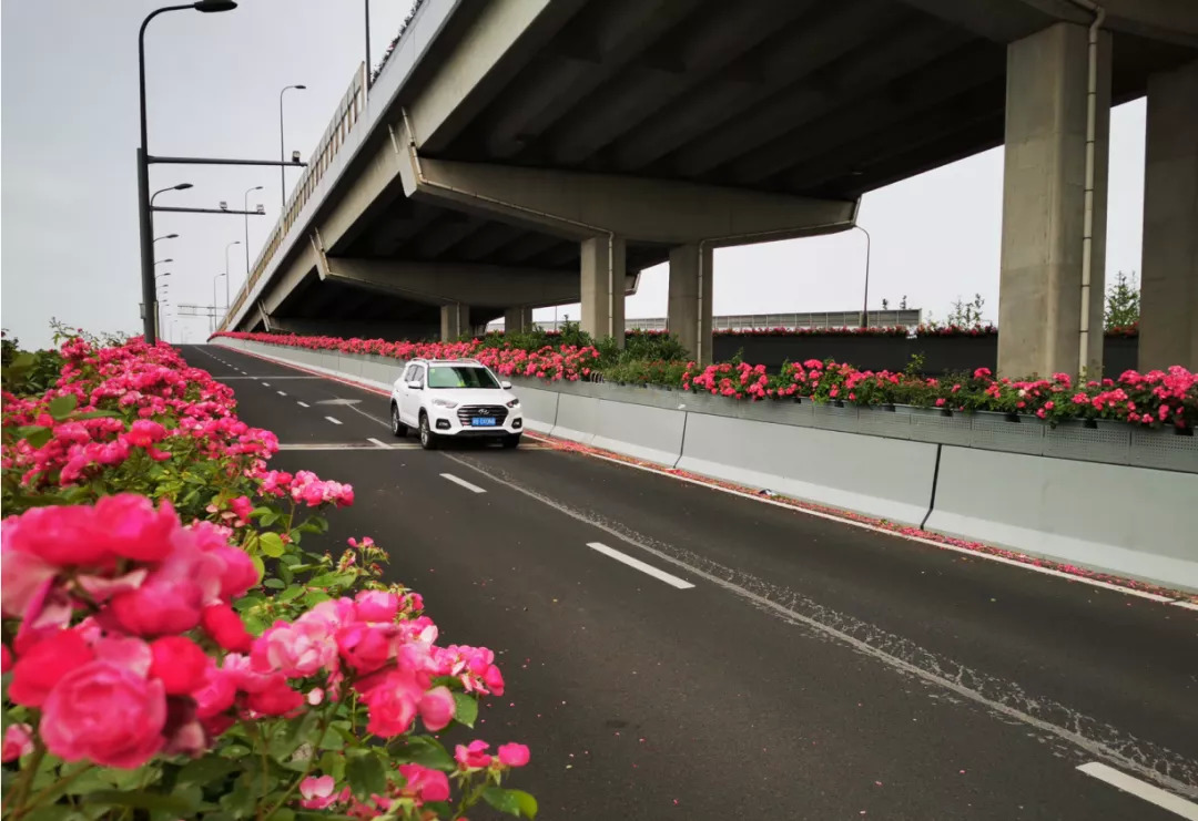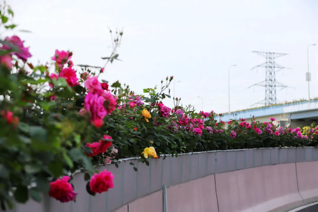 这几天,宁波50余公里高架两侧月季花迎来盛花期。