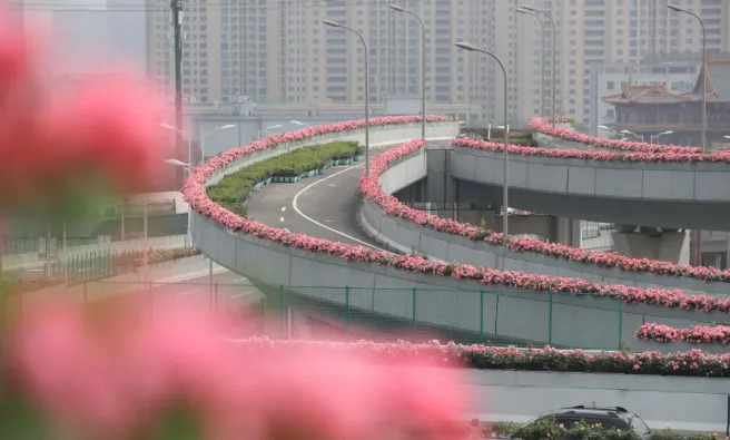 目前,宁波环城南路高架,北外环高架、机场路、世纪大道一期等高架的花廊,都迎来了盛花期,驱车上高架,一路都有繁花相伴,这样的“鲜花路”总长度绵延50余公里。